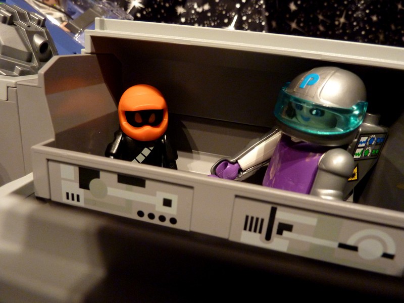 Doch nachdem Sissi genug Standgepaukt hat, bringen Sie erst einmal Darklord zu seinem Schiff. Da die Space-Karts irgendwo im nirgendwo verschwunden sind, nimmt Sissi Atlan und Jedi im Sternen(und Revisor)-Zerstörer mit.