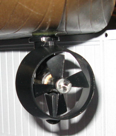 Jetzt ist alles bereit für die Jungfernfahrt. Unter der Ruderhalterung wurden noch Styrodurkörper angebracht um die Lage zu stabilisieren.