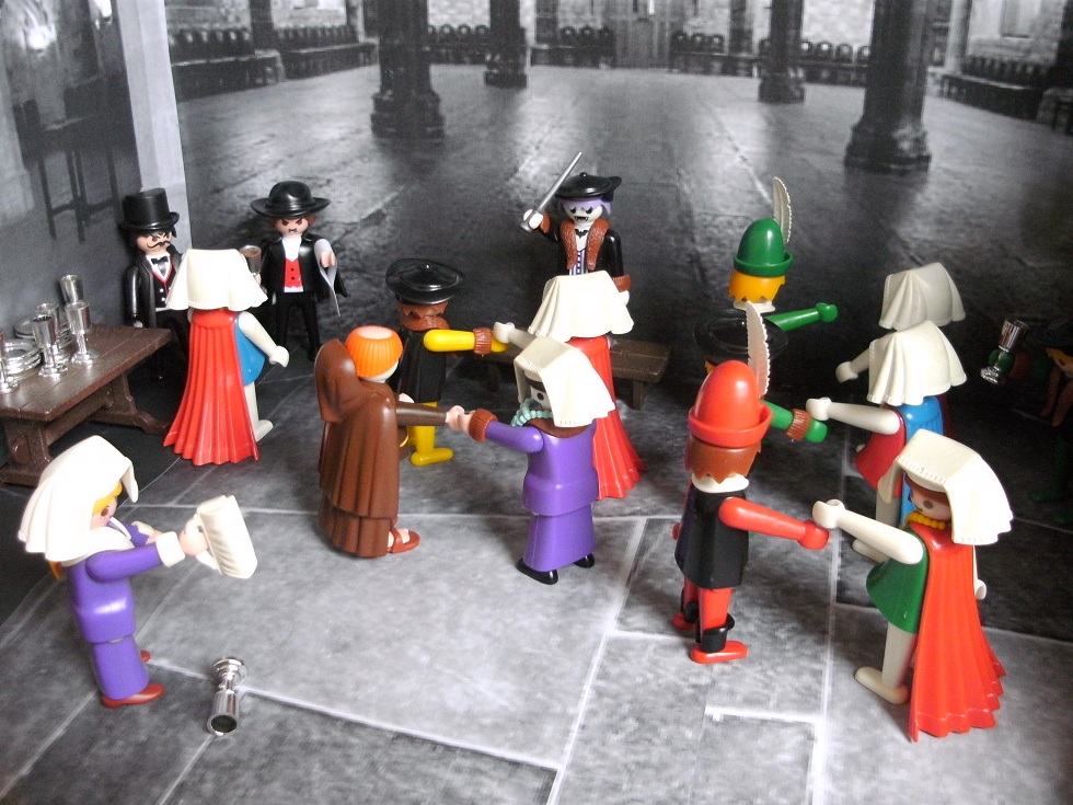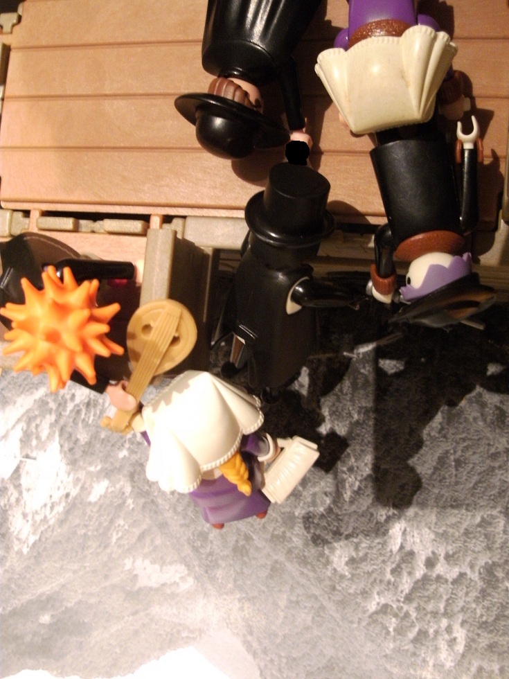 Professor: „O nein, wir sausen gleich alle, das Dach hält uns nicht…wir stürzen runter.