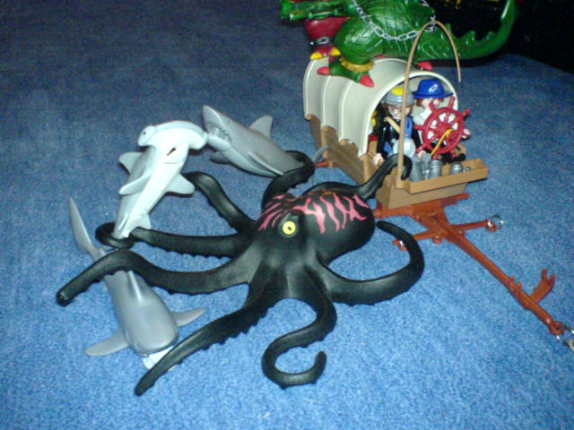 "Stimmt, der packt sich die Haie von denen er angegriffen wird, und drischt damit auf die anderen Haie ein."