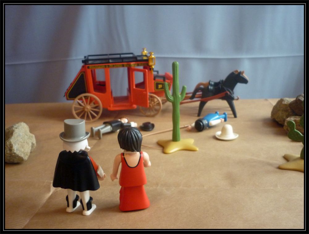 Nachdem sich die beiden Männer aufrichteten, begann der Kutscher zu erzählen, daß sie von zwei üblen Banditen überfallen und ausgeraubt wurden![/b]