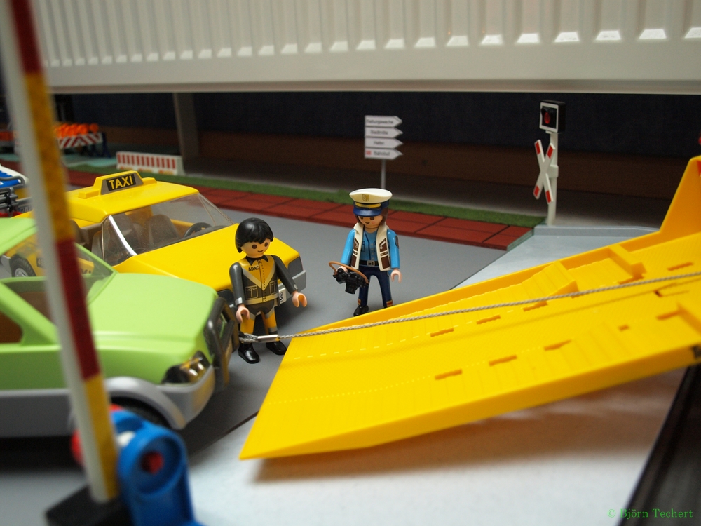 "Ist der Bahnübergang für Züge gesperrt?" fragt Wolfgang