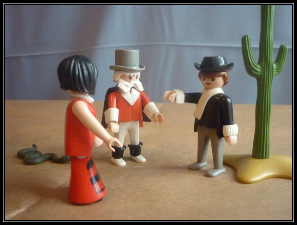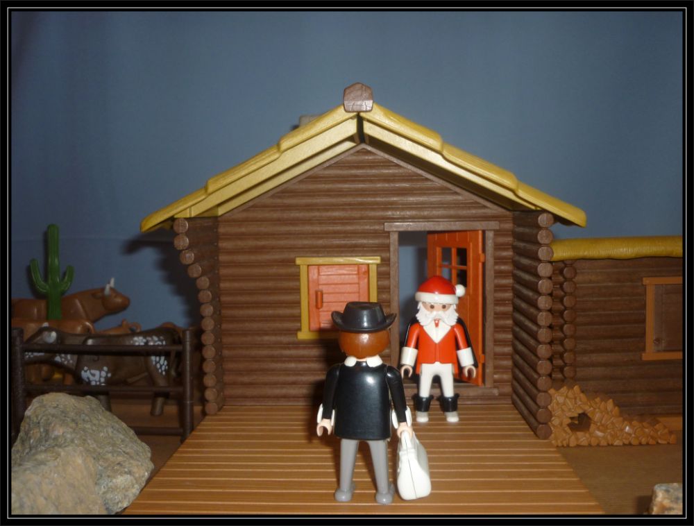 "Ich heiße übrigens Zacherl, Sebastian Zacherl. Ich arbeite in der Bank und sollte das Geld zu Kris Kindl bringen, damit er für sein Wildwest-Geschenkeservice die Geschenke besorgen kann, nun ist Alles geraubt!