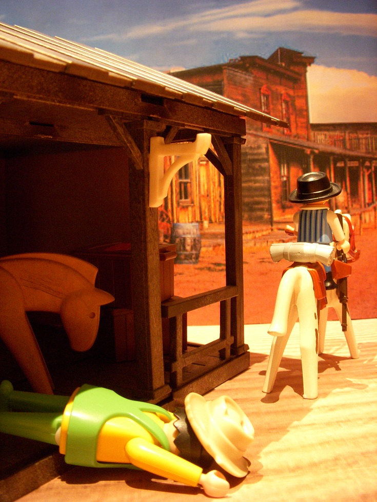 J.B.:"Nicht jetzt.., danach gehst du zum Saloon. Du erzählst den Bertie, das Tratschmaul, das ich mich Morgenmittag mit all den möchtegern Scharfschützen treffen werde. Am Ende der Stadt, um 12."