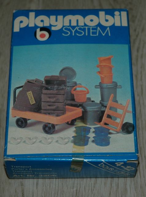 Wie ich dem Collector entnommen habe, gab es zwei Versionen von 3402. Der Verpackung nach handelt es sich bei meinem Set um V1 von 1976. Der Inhalt ist allerdings eine "Mischung" aus V1 und V2. Die Gepäckwagen sind gelb, die Handkoffer grün und die Schirmstiele schwarz.