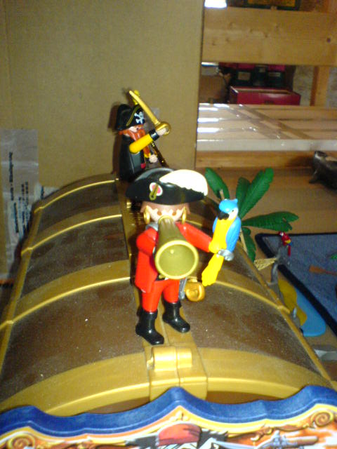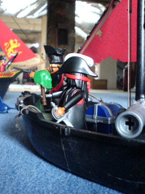 "Guten Tag, mein Name ist Pirat Hakenhand. Ich habe eben einen blauen Kanonensegler erspäht."