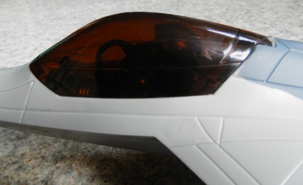 Wann die Cockpit noch ganz original war - also vor das reinbasteln von den Playmobilteilen - passte die Playmobil-Figur besser rein, weil sie wie die originale nicht-Playmobil-Figur mit den Füssen weiter nach vorne sitzen könnte: es gab kein Instrumentenpaneel, nur ein Loch vorne in der Cockpit um die Füsse reinzustecken.