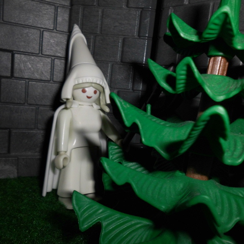 Danach geht sie still durch die Burgmauer davon.