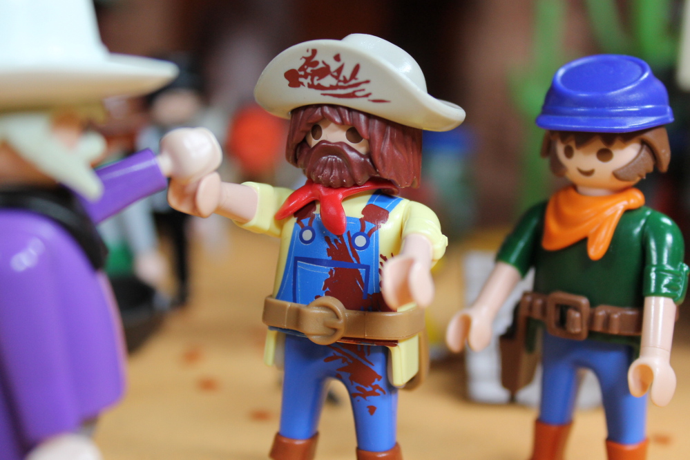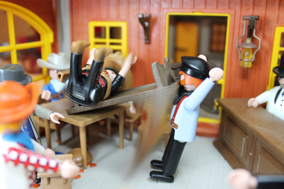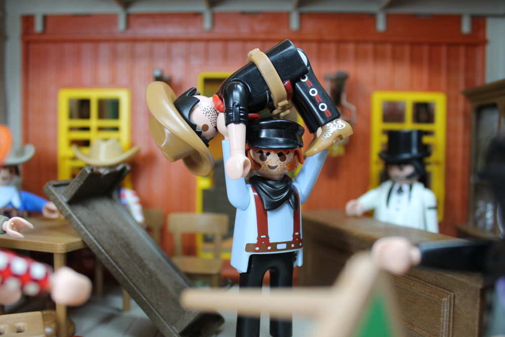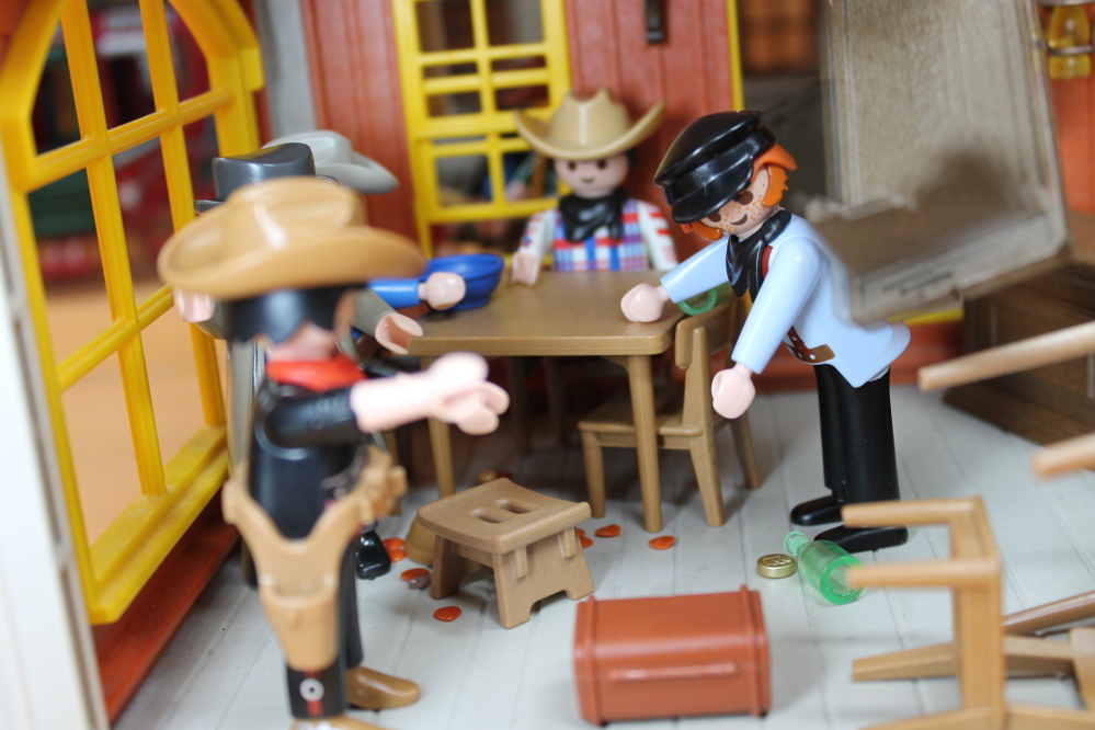 Ich weiß nicht wovon Du sprichst! Soweit ich weiß, wolltest Du mir meine Freundin stehlen. Big John, kümmere dich um diesen uneinsichtigen Cowboy!“ befahlt Percy Wheeler seinem großen Freund.