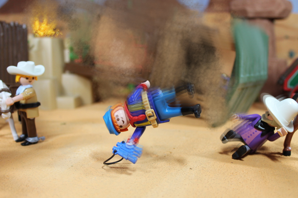 „Ja… klasse Idee… !“ murmelte Jerry als er seinem Vater den silbern angemalten Colt übergab. Er wusste, dass sein falscher Colt keinen Schutz für die Männer bieten konnte. Jerry musste so schnell wie möglich seinen echten Colt wiederfinden.