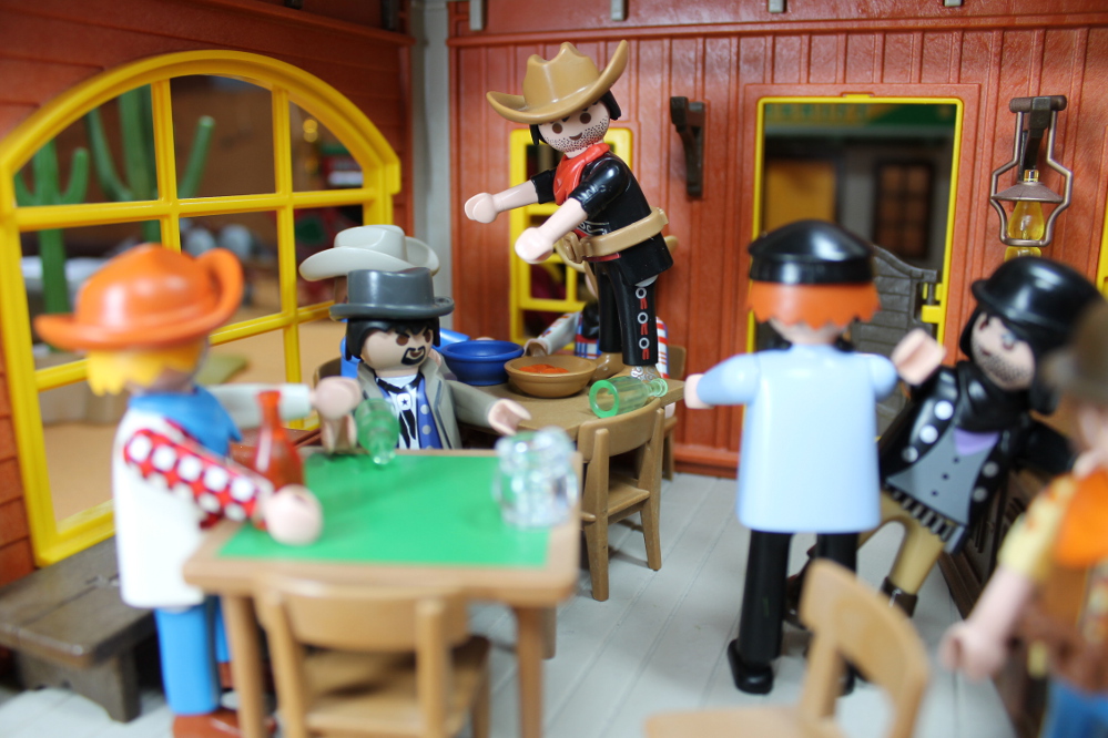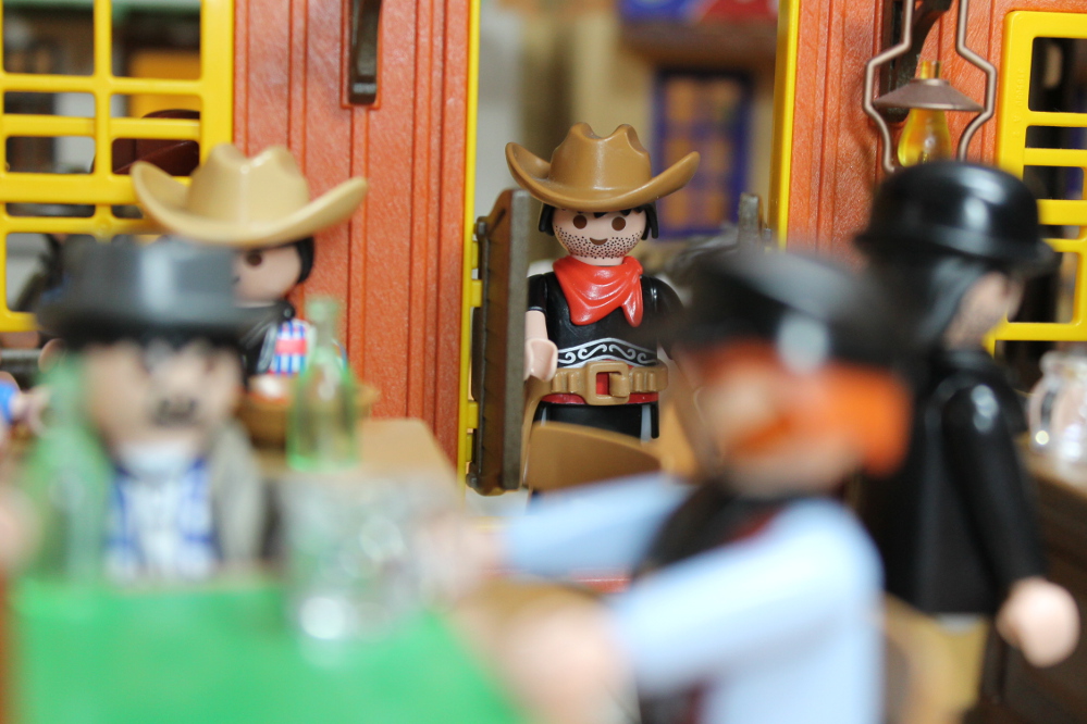 Jerry war am Saloon angekommen und ging durch die Tür.