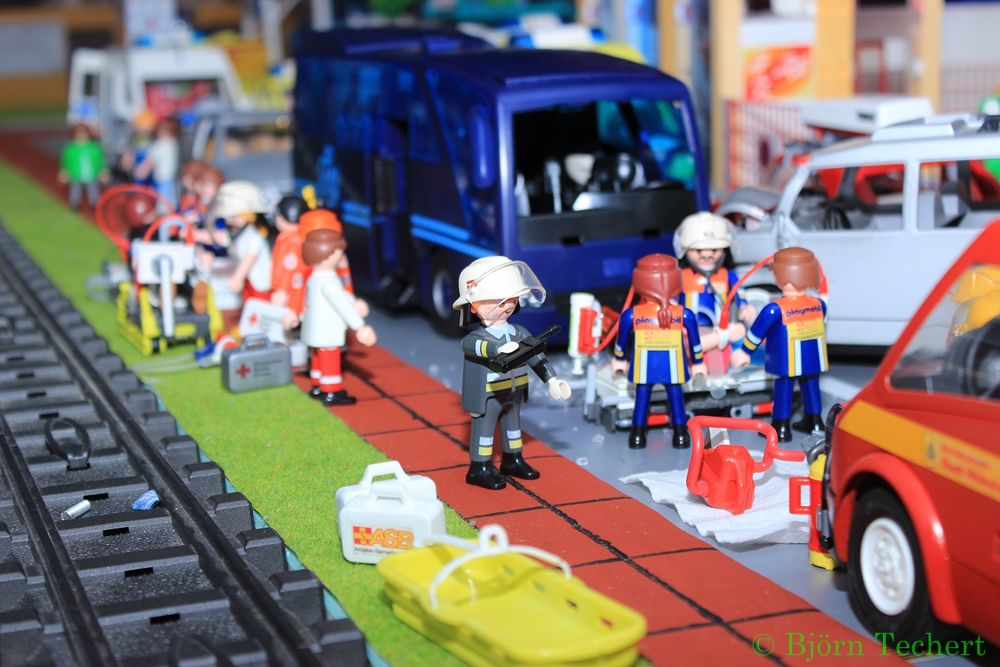 "Nein, mit Absprache unseres Chef und dem Rathaus werden wir nun den Bus auf den Schulhof stellen und der Geländewagen wird von unseren Kollegen abgeholt."