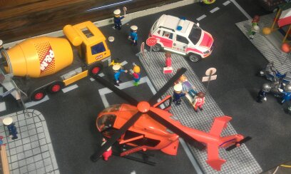 Nach drei Jahren kam es zum ersten Mal zu einem Verkehrsunfall mit Personenschaden. Der Fahrer eines Betonmischers übersah einen Radfahrer. Dieser kam zu Fall und glücklicherweise mit leichten Schürfwunden und einer Gehirnerschütterung davon....Das Fahrrad selbst hat etwas mehr gelitten.....Sicherheitshalber wird er mit dem RTH "Christoph 3" ins Krankenhaus geflogen.....