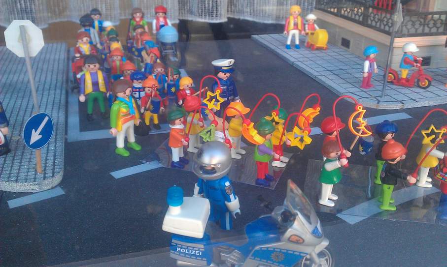 Wie jedes Jahr auch wieder ein kleiner St. Martinsumzug. Mal sehen, ob ich es nächstes Jahr mal schaffe, die Laternen zu beleuchten.....Da das Schaufenster meist im Hellen auf ist besteht dazu im Moment noch keine Notwendigkeit.......