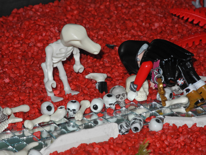 Obwohl er auf dem Trödelmarkt frische passende Schädel bekommen hatte, griff er nach einer extravaganten Variante.
