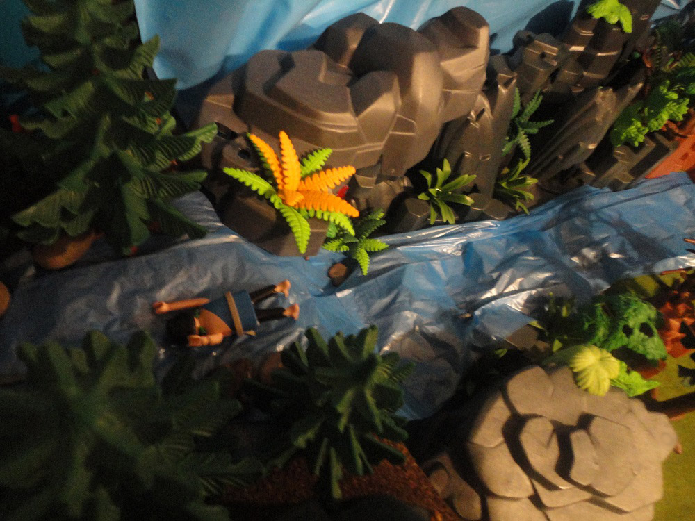 Die Angst der möglichen Verfolger im Nacken mussten sie über die Felsspalte springen.