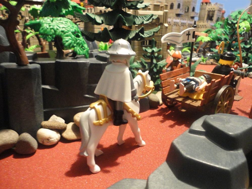 Der Hauptmann ließ einen Reiter losschicken um einen Karren für den Verletzten zu beschaffen.