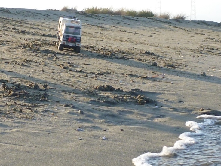 Ein kleines relativ einsames Stück Strand, aber bei Automobilisten sichtlich beliebt. Luft 32°C, Wasser 27°C - alles optimal...