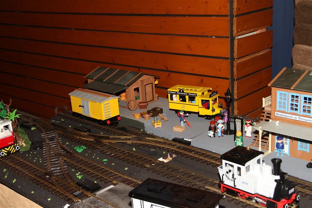 Danke für die Blumen, freut ich, daß es Euch gefällt. Die Kritik an den Modulübergängen kommt zu Recht. Das ist einfach der Haken daran, wenn man bestimmte Teile austauschbar macht - dann paßt nicht immer jede Landschaft neben jede andere Landschaft und eine Straße endet auch mal einfach an einer Bahnsteigkante. Das läßt sich leichter gestalten, wenn man die Modulfolge von vorneherein festlegt und nicht mehr ändert - aber dann geht der eine, große Vorteil verloren, nämlich daß man den Aufbau immer wieder den Gegebenheiten vor Ort anpassen kann. Ganz perfekt wird man das nie hinbekommen.Ritter Kunibert hat geschrieben:Wenn Kritik hier überhaupt geübt werden darf, würde ich den Boden nennen. Die einzelnen Elemente des Dios passten nicht so harmonisch zusammen.