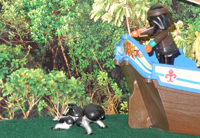 Dort setzten sie zur Landung an und versteckten ihr Schiff zwischen Bäumen.