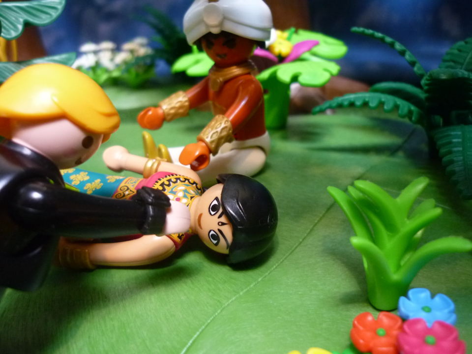 Shwe Kyi und Knusper legten die ohnmächtige Frau ins Gras und Knusperkeks machte sich daran, sie medizinisch zu versorgen.