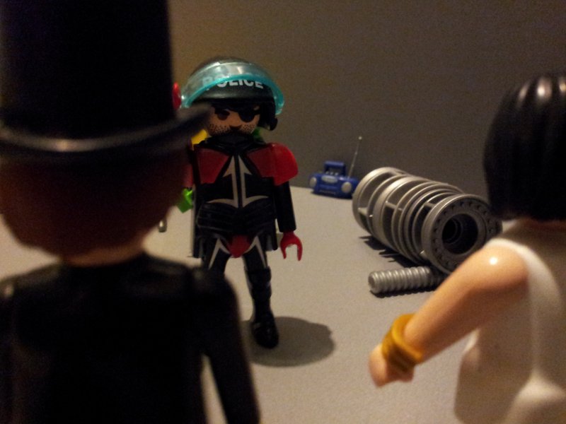 Das Team wird von einem verwegen aussehenden Sicherheitscommander begrüsst.