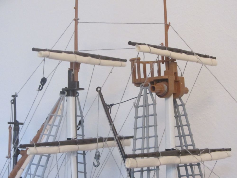 Da das Forecastle die entfalteten Segeln behindert hat - dachte ich mir da könnte ich gleich ganz auf die Segeln verzichten und mache mal eine etwas aufwendigere Takelage.