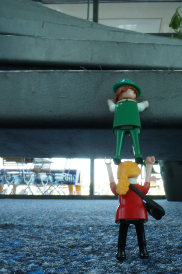 Tja, wie sonst? Der Aufzug ist schon wieder besetzt.