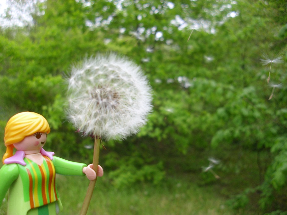Da gab ich ihr den Rat, sich eine Pusteblume zu suchen. Denn wenn man sie mit einem Mal leerpustet und sich dabei ganz doll etwas wünscht, kann das in Erfüllung gehen...