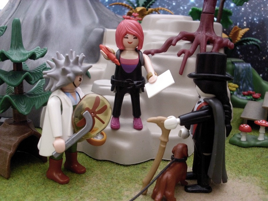 Betty: „Ach komm, jedes Mal wenn er zu Besuch ist, fachsimpelt ihr über Gen-Magie und darüber ob nun der Wolfsmensch das Ding aus dem Sumpf besiegen würde. Das ist sooo langweilig“ Vlad: „Soll ich ihm sagen, dass er Miss Tough nächstes Mal mitbringen soll?“