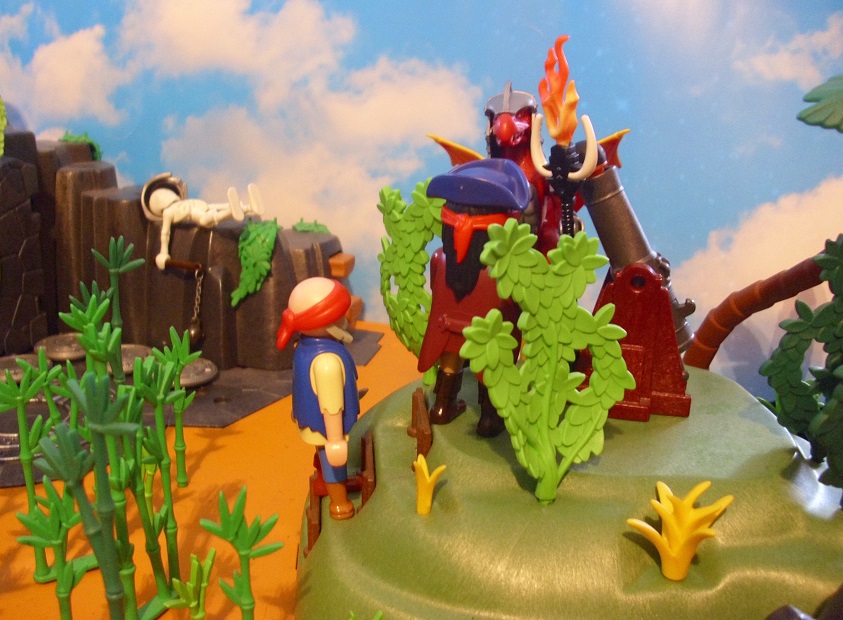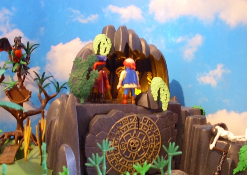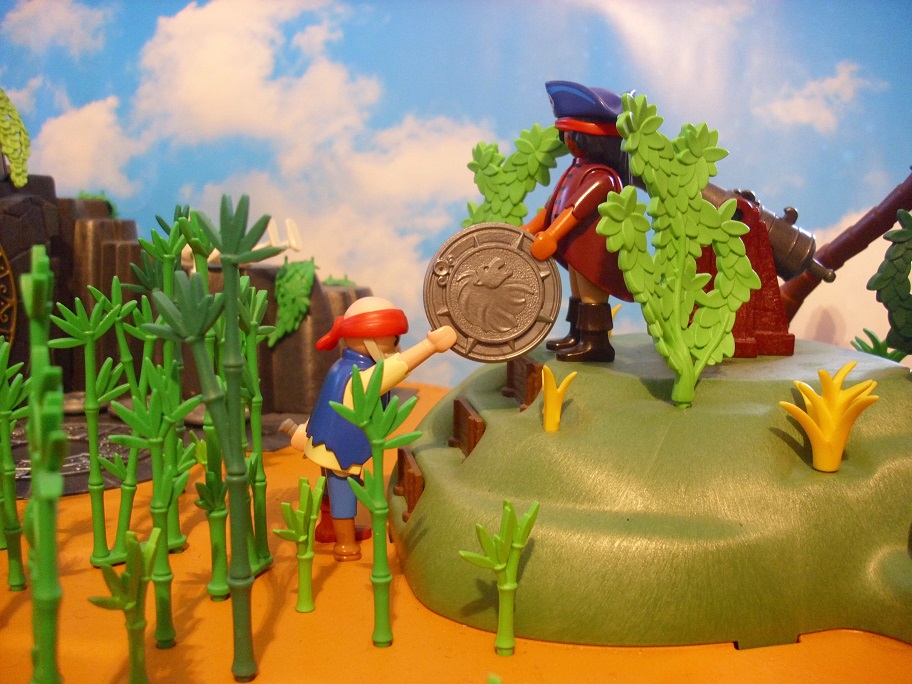 „Ihr dürft ihr nicht an Land. Es sein denn, ihr erfüllt mir eine Aufgabe.“ Jack und Jim haben nichts zu verlieren und gehen darauf ein. Der Drache überlegt kurz und sagt dann: „Sucht mir was zu essen.“ Und er gibt ihnen sein Netz und seine Harpune. Es dauert nicht lange und die beiden haben ein paar Krebse gefangen. „Gut, ihr dürft an Land. Und hier habt ihr die erste Scheibe zum Eingang der Schatzhöhle.“ Etwas irritiert nehmen sie die Scheibe und gehen Es dauert nicht lange und sie treffen auf der Insel auf einen weiteren Drachen.