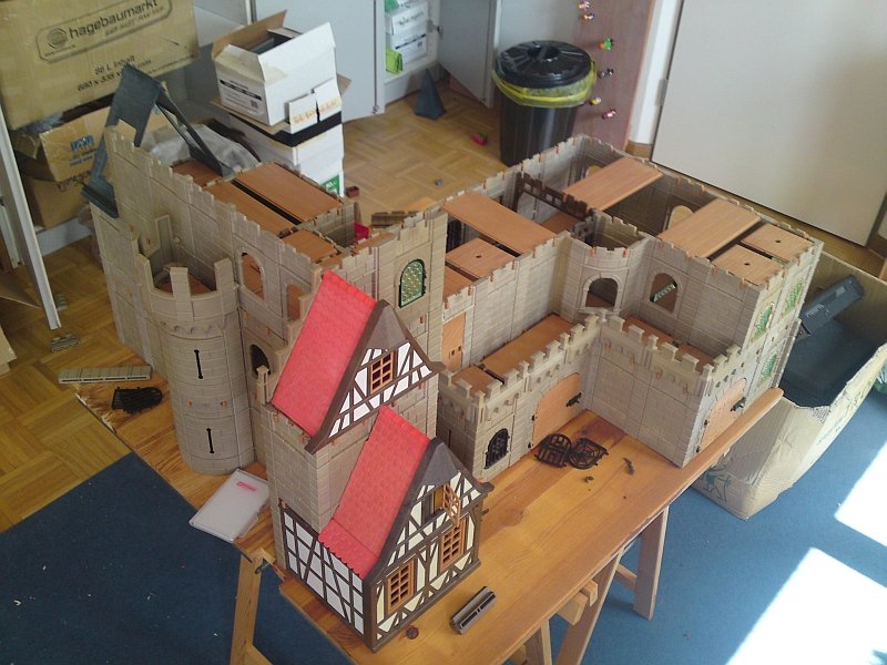 Wer gerne tüftelt kann ja mal überlegen, wo hier später mal das Dach sitzen wird - und wierum der Zwischenbau dann in der Wartburg sitzen wird :pfeif .