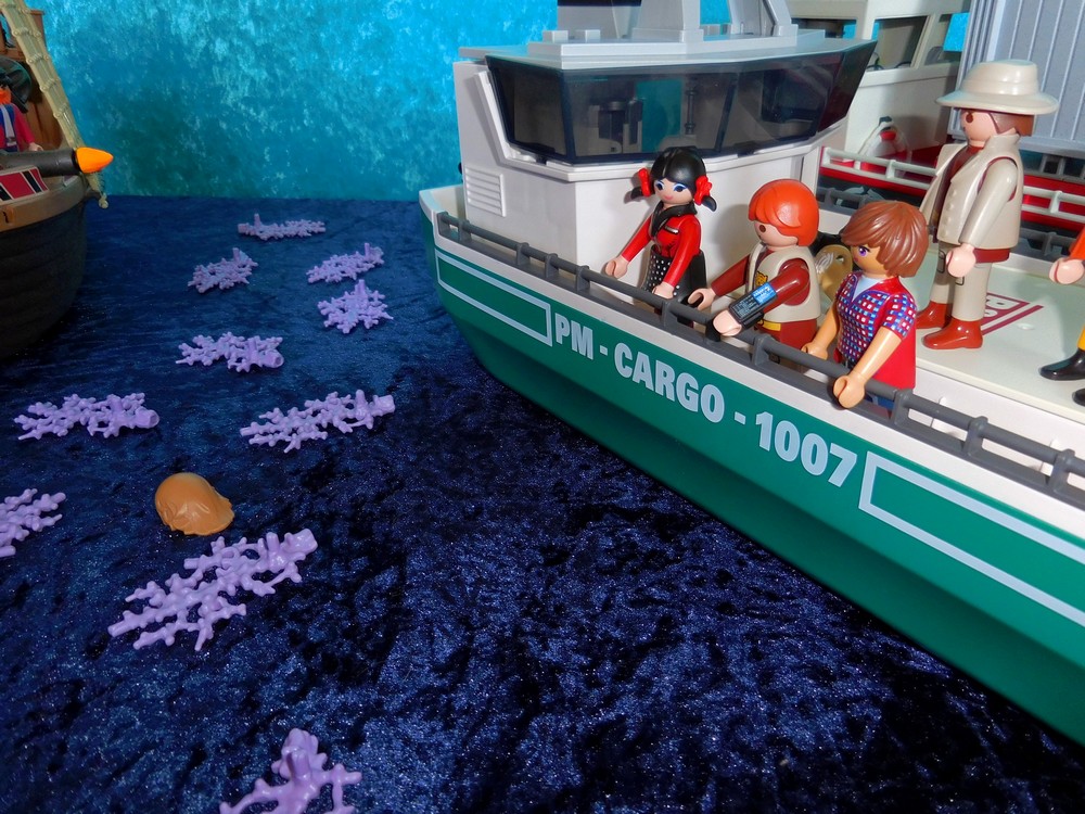 Und so kommen wenigsten die Blauschöpfe und die Freunde auf dem Frachter davon.