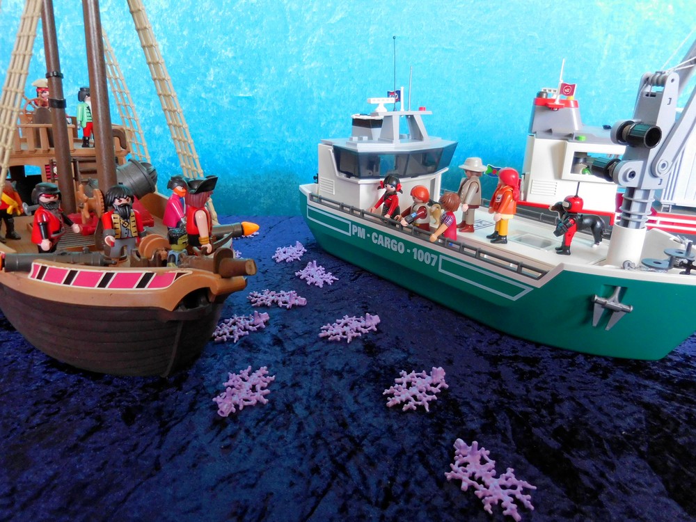 Das Piratenschiff hat aufgeholt. Es geht längsseits.