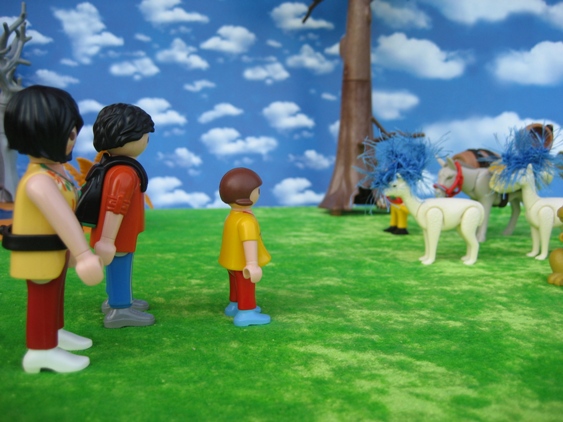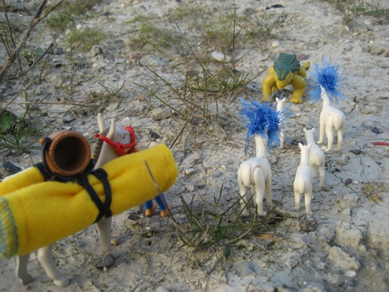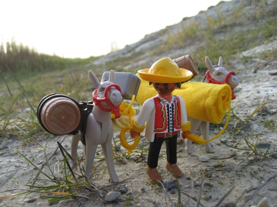 "Das ist unsere Überraschung. Wir haben euch Packesel besorgt, Schlafsäcke und ein Fass Wasser. Proviant habt ihr im Bollerwagen", erklärte José. "In den Bergen ist es jetzt nachts zu kühl, da braucht ihr Schlafsäcke. Für Sai gab es eine Sonderanfertigung."