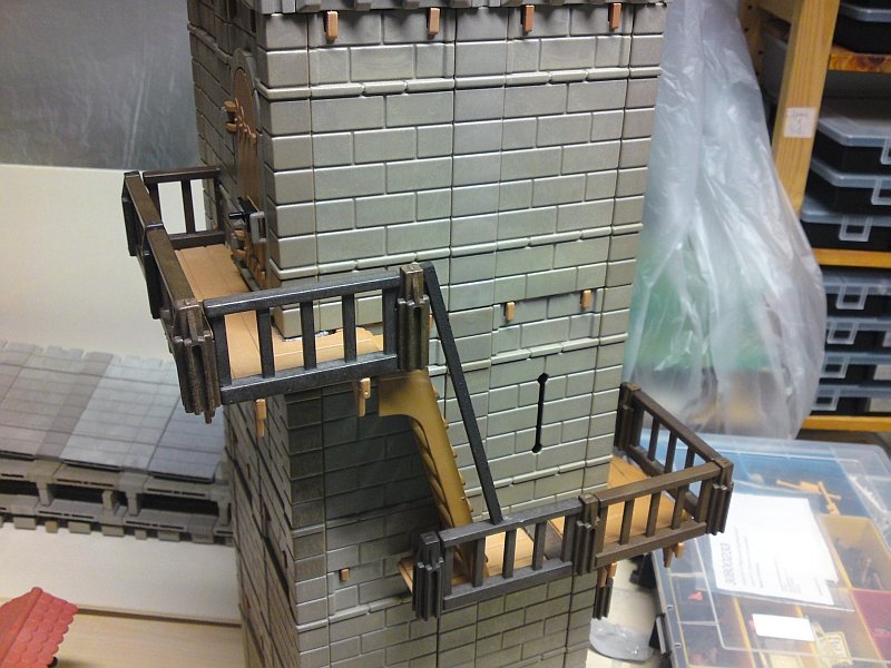 ...3. wollte ich den Palas gerne wieder einrichten; die Puppenhausetagen sind höher als die Stecketagen. Selbst wenn ich die Dreiertiefe mit Steck hinbekommen hätte, hätte ich ein Problem mit dem Ausstatten der Räume (und dem Angucken) bekommen.