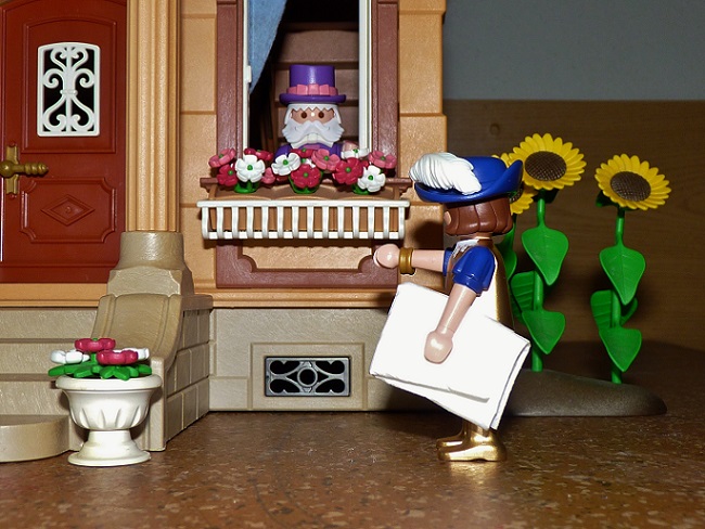 Der Edelmann ist auch im Schlafanzug dick, aber der längsgestreifte Schlafanzug macht ihn schlank aussehend.