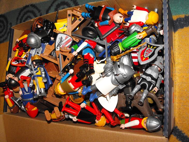 So, denke ich, geht es doch den meisten hier. Nach dem Flohmarktbesuch hat man wieder eine Menge neue Teile, man holt mindestens 123 Kisten raus, weil in jede Kiste 1 bis 3 Teile rein müssen und wenn man zu 90% alles wegsortiert hat, kommt urplötzlich und ganz unverhofft ( :kicher :kicher :kicher ) eine weitere Ladung Playmobil an.