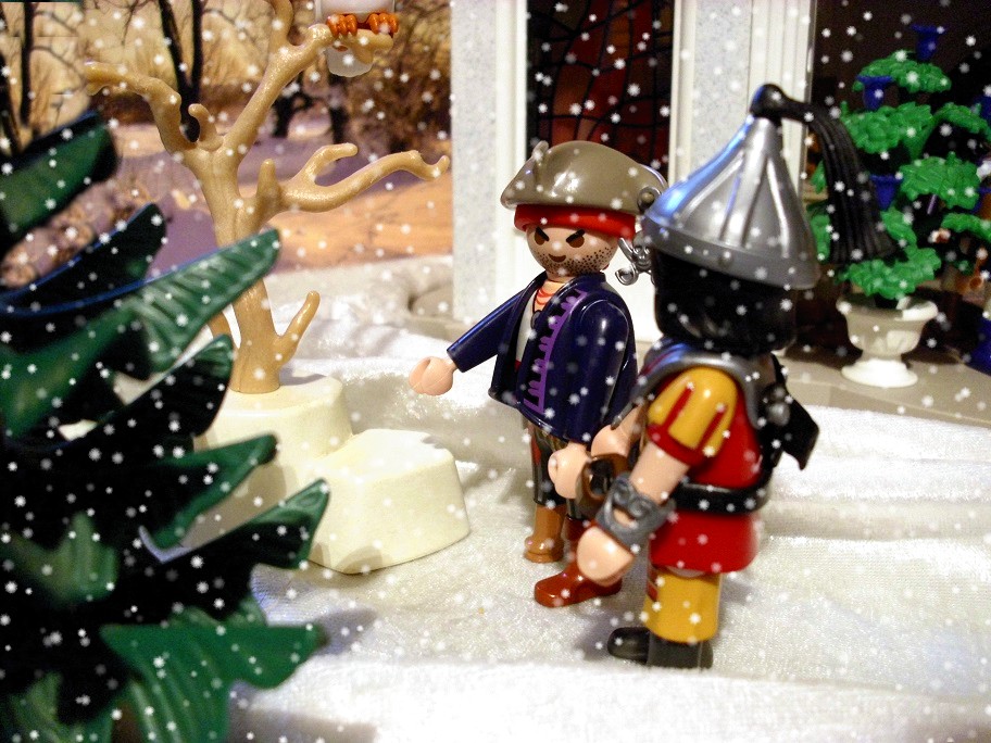 „Oh gern.“ antwortet die Lady. „Aber da hinten sind wir an welchen vorbeigekommen, um die ich mir noch mehr Sorgen machen würde. Die stecken mit dem Boot auf dem zugefrorenen Fluss fest.“ Erzählt der Marquis beim hineingehen