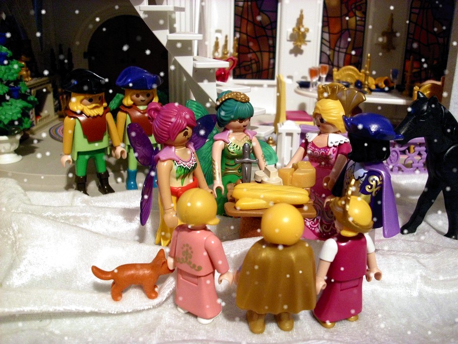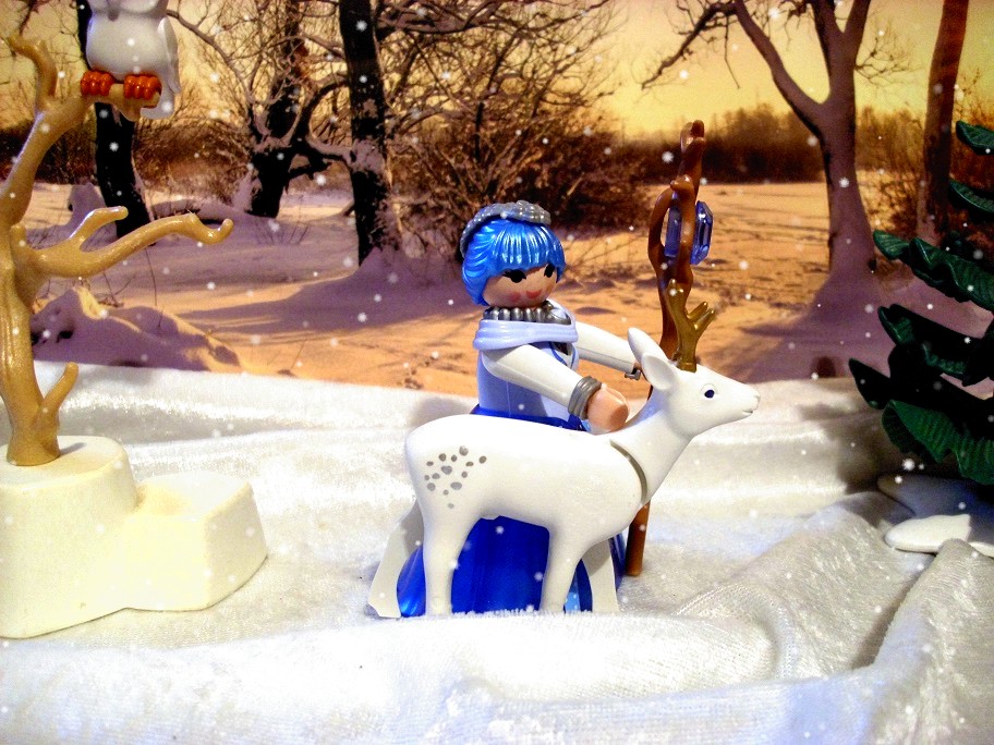„Dann ist Nagara nicht mehr weit, Sonnenschein. Wie schmücken das Schloss schon mit Hilia-Bäumchen.“ Mit den blauen Blüten dieses immergrünen Bäumchens besänftigt man die Eisfee. „Darf ich helfen?“