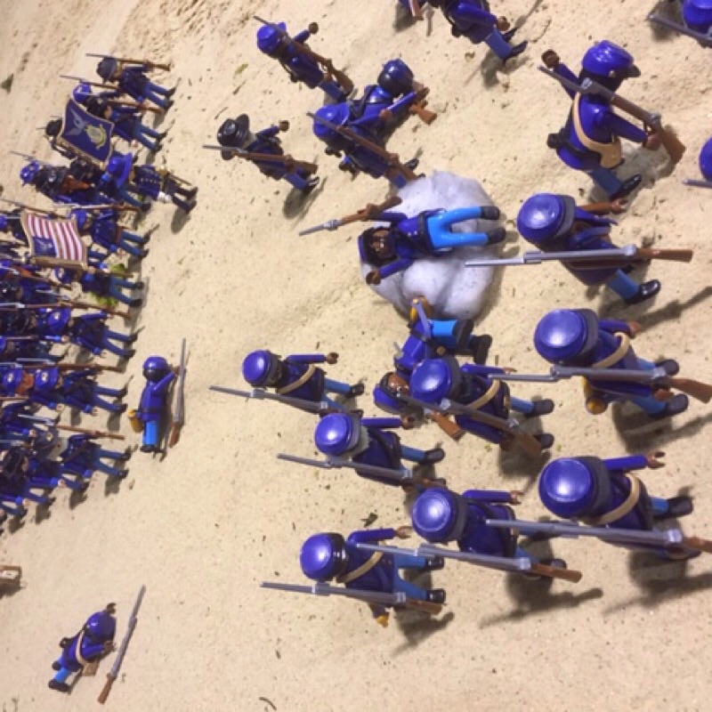 Cool ! Angriff auf Fort Wagner durch das 54th Massachusetts ! War sicher nicht einfach die vielen schwarze Blauröcke zusammenzustellen ! Danke für das Zeigen ! Wirklich tolle Idee !