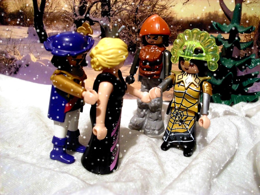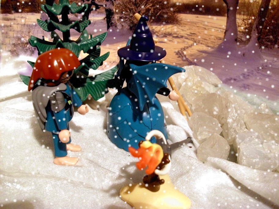 „Das Schiff steckt im Eis fest, was soll passieren? Und wir haben immer noch keinen Schatz.“ Nörgelt Spinnweb vor sich hin. Auf der anderen Flussseite scheint etwas zu sein. Ein Gebäude oder sowas.“ Sagt Captain Schneeflöckchen.
