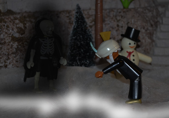 “Ist das Gespenst des künftigen Weihnachten bei mir?” fragte Ab del Scrooge ganz zaghaft. Er erhielt aber keine Antwort.