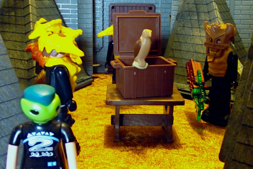 Er bückt sich, hebt den Handschuh auf. Was die Reisenden für eine Hütte hielten, ist der