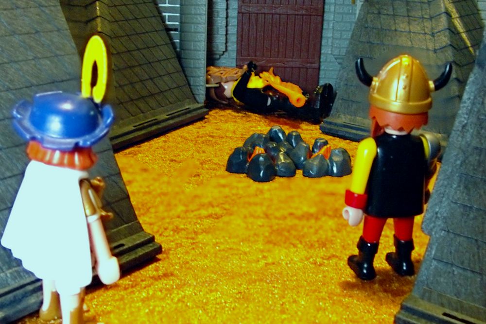 Doch kaum, dass sie die Beute auspacken, ertönt lautes Wehgeschrei. Der Alte, Hreidmar,