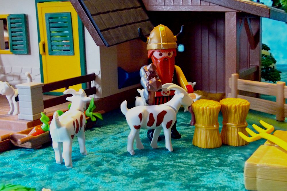 Ziegen finden etwas Stroh im Stall, während die Götter mit ins Haus gehen.