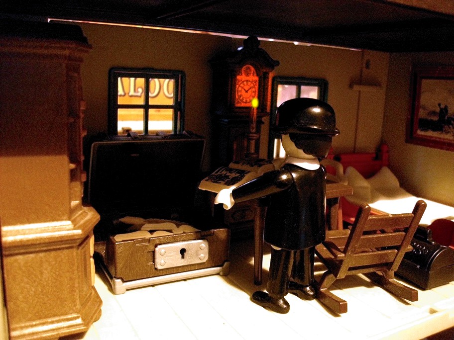 Ja, es war ein Hotelzimmer in einem kleinen Ort namens Beavertown irgendwo auf der Postkutschenrute Richtung Westküste. Achja und nebenan schlief der charmanteste Mann, dem sie seit vielen Jahren begegnet war. Lucie lächelte und begann den neuen Tag und mit ihm das neue Jahr. Und wie jeden Tag in den letzten 50 Jahren begann sie ihren Tag am liebsten mit einem Frühstück. Also kleidete sie sich an und ging nach unten. Die immer noch sehr unausgeschlafene Besitzerin des Hotels entschuldigte sich und bat sie, drüben im Saloon zu essen, da es hier nur die Schlafmöglichkeiten gäbe.