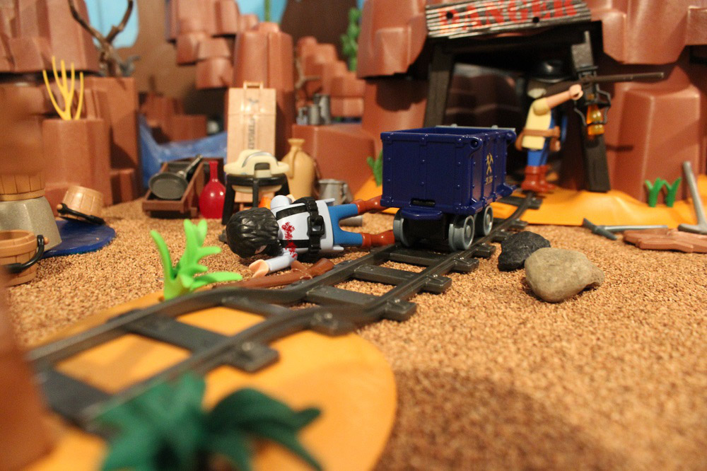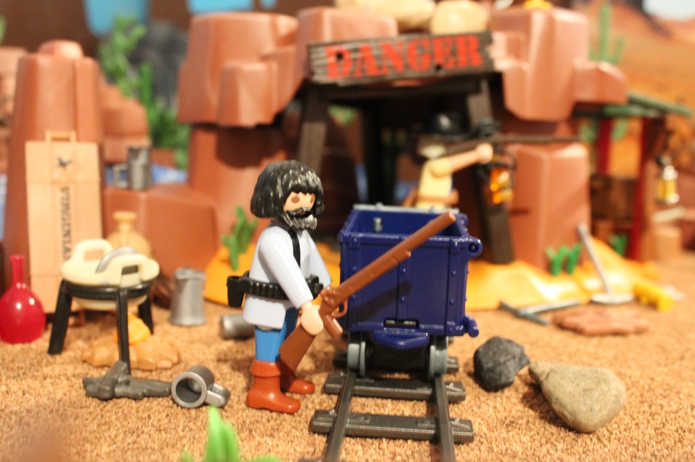 Steven: „Das ist die Schwarzhutbande. Sie wollen uns überfallen und uns das Gold aus der Mine abknöpfen.