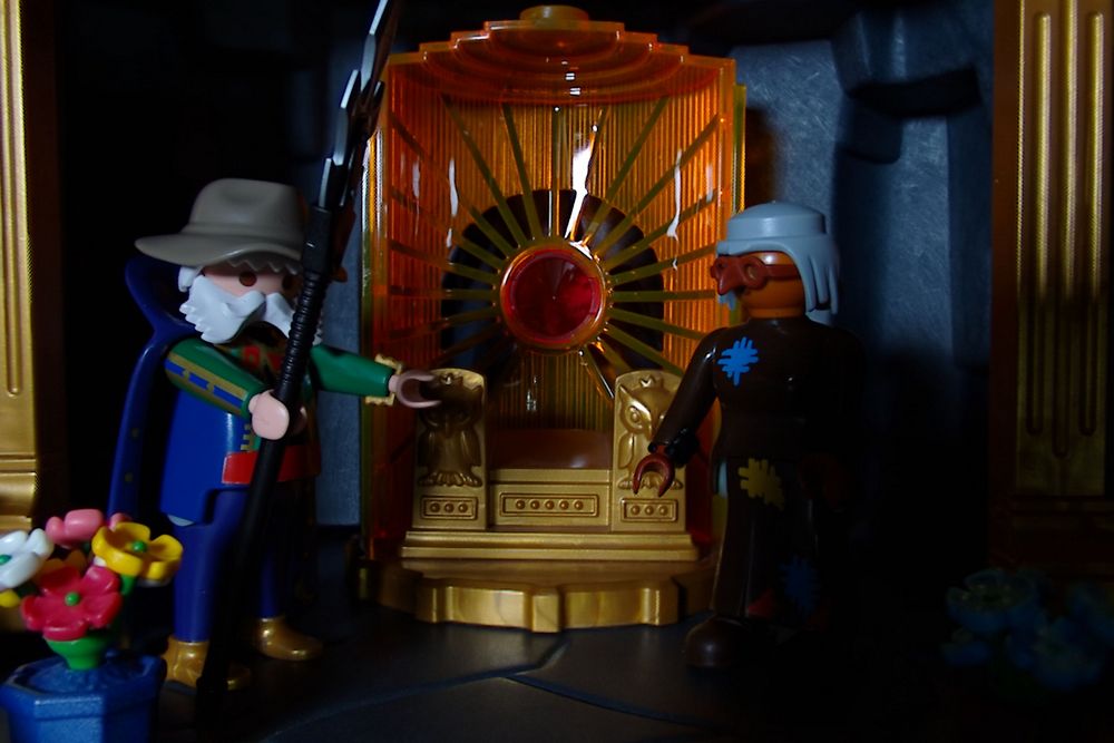 Und dann schleudert er den Zweig in die von Loki angedeutete Richtung.