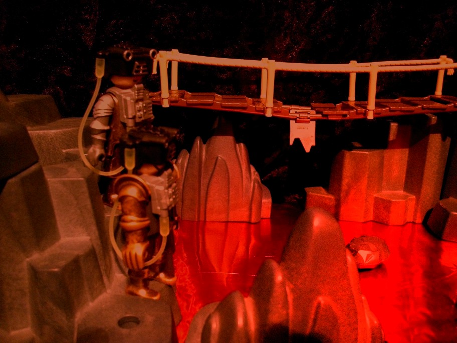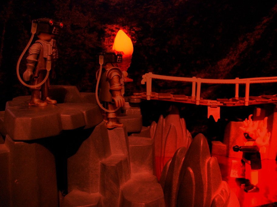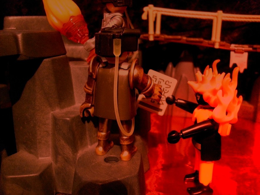 Flambert: „Nein nein nein!!! So geht das nicht. Laut des Vertrags zur gemeinsamen Nutzung des Vulkans ist Ihnen das Betreten dieses Bereiches verboten. Ich werde mich bei der Erdverwaltung über Sie beschweren Doktor Evil.“